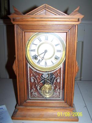 ANTIQUE E.N. WELCH EMPRESS V.P. 1 and 8 DAY - VENEER SHELF CLOCK