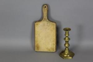 A WONDERFUL 19TH C SMALL BREAD BOARD WITH A TALL CUT OUT HANDLE OLD PATINA