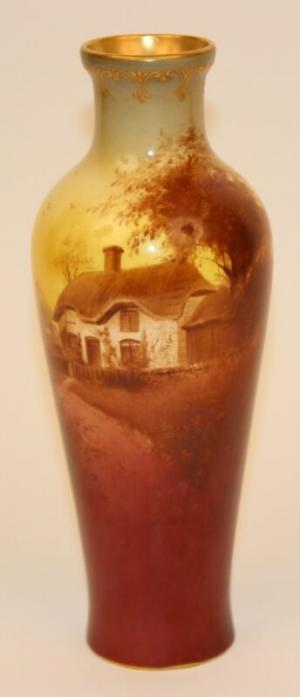 ROYAL DOULTON TALL HAND PAINTED COTTAGE SCENE VASE ARTIST SIGNED