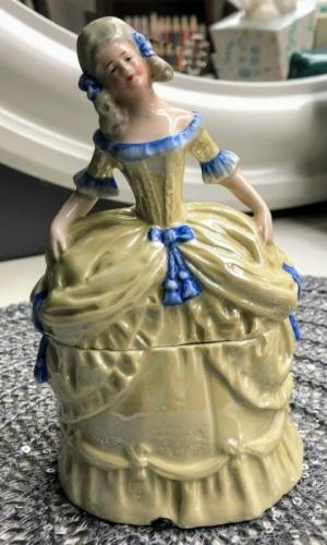 Antique Victorian German Porcelain Lady Figurine 5337 Powder Box Trinket Lustre