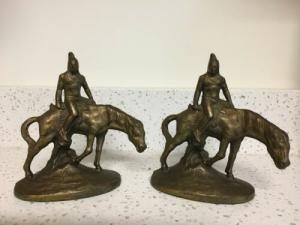 Hubley Cast Iron Native American & Horse Bookends, Doorstop, Decorative, Antique