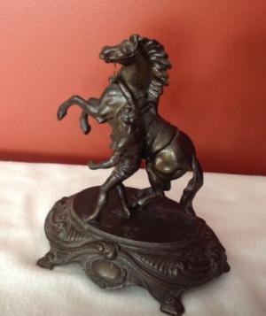 Antique 19thc Bronze Statue Marley Horse and Trainer 9" Tall
