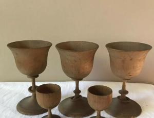 Trio of Treen Turned Wood Chalice Wine Goblet Single Ring Puzzle Cup