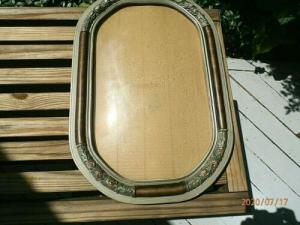 Vintage oval wood gesso picture frame w / bubble glass image size 10" x 16"