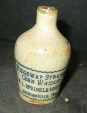 ANTIQUE STONEWARE MINI JUG RIDGEWAY STRAIGHT CORN WHISKEY FLORIDA E195 PL