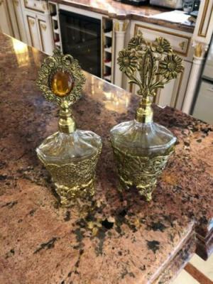 Vintage Perfume Bottles Set Of 2 Filigree Gold Dresser Bottles Applicator Wands
