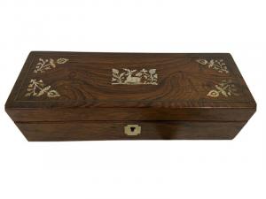9 ½” Antique Rosewood Victorian Glovebox Mother of pearl Stag No Reserve!