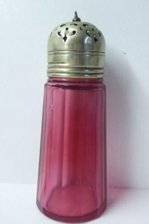 VINTAGE ANTIQUE RUBY CRANBERRY SUGAR SHAKER SIFTER EPNS SILVER PLATED LID
