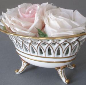 Vintage Porcelain Reticulated 10" Oval COMPOTE Bolted OLD PARIS Style GILT Trim