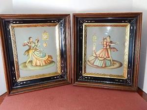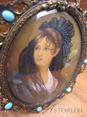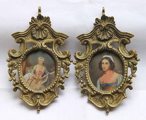 VINTAGE LOT TWO MINIATURES PORTRAIT LADY BRASS FRAME ROCOCO STYLE