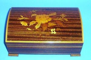 VINTAGE REUGE INLAID WOODEN JEWELRY TRINKET MUSIC BOX ITALY WORKS