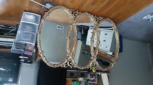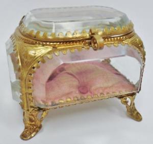 ANTIQUE FRENCH ORMOLU GOLD GILT BEVELED GLASS FOOTED CASKET VITRINE JEWELRY BOX