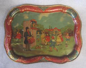 Tin lithographed Punch & Judy Tray not marked turn of 20th century shaped