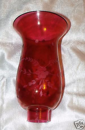Vintage Ruby Red Cranberry Glass Lamps Floral hand Etched globe ONE GLOME