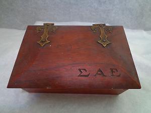 SAE Sigma Alpha Epsilon Fraternity Arts & Crafts Wooden Box Mahogany & Brass