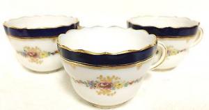 Set of 3 Unusual Decorative Meissen Hand Painted Floral Cups