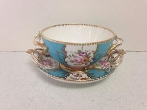 Antique 18th Century French Sevres Porcelain Soup Cup with Saucer Hand Painted