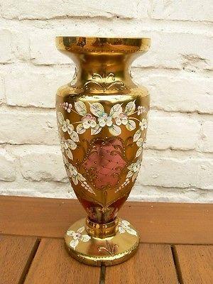 Gorgeous vintage Czech Bohemia MOSER ornated art glass vase