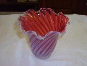 Antique Fenton opalescent Cranberry Glass Swirl Lamp Shade
