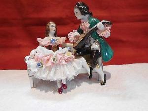 wonderfull antique figurine romance couple volkstedt rudolstadt porcelain lace