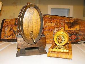 2 ANTIQUE BARTOP WHISKEY BRANDY WOOD KEG BARREL IN STAND
