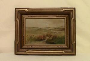 EARLY 1900`S OIL PAINTING O/B PRAIRIE FLOWERS LANDSCAPE AMERICAN ARTIST POWELL