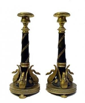 LOVELY GREAT QUALITY ORNATE VICTORIAN ERA BRASS / BRONZE FOOTED CANDLESTICK PAIR