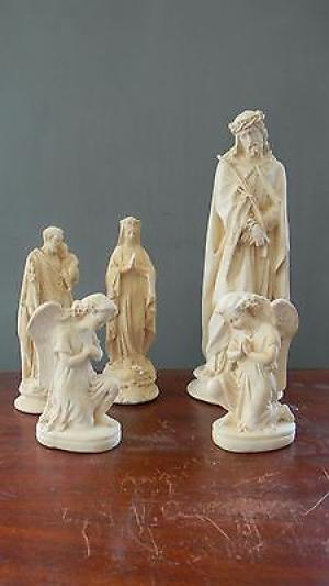 ANTIQUE VICTORIAN RELIGIOUS PLASTER FIGURES - JESUS - MARY - JOSEPH - ANGELS