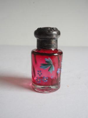 Antq Sterling Silver Cap Cranberry Glass Baby Thumbprint Enamel Painted Shaker