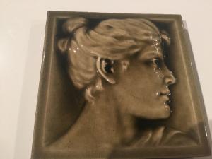American Encaustic Majolica Relief Portrait TIle Venetian Victorian Woman