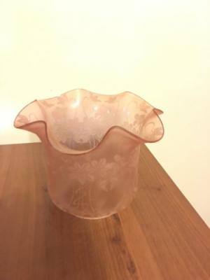 Antique Cranberry Pink Red Etched Glass Oil Lamp Tulip Shade