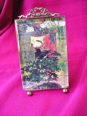 ANTIQUE FRENCH BRASS FRAME LESS PICTURE EASEL 4.5 X6.5" HEAVY BEVELED GLASS