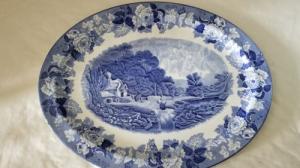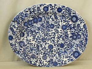 LG 19thC Antique COBALT Painted INDIAN EMPRESS ENGLISH China SERVING PLATTER
