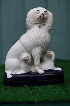 SUPERB MID 19thC STAFFORDSHIRE POODLE DOG WITH RECUMBENT PUPPIES c1860s