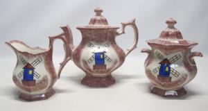 3 Pc Vintage Red Spatterware Continental Windmill Tea Pot Service Set NR #8 yqz