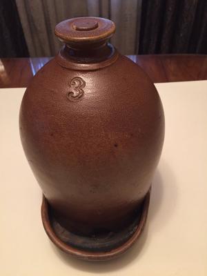 Butter Crock Salt Glaze Stoneware? 4 3/4" Tall Chocolate Brown/Black Strasburg?