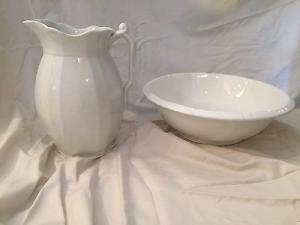 ANTIQUE IRONSTONE PITCHER & WASH BASIN-COBALT BLUE