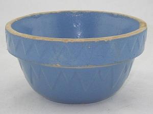 White Hall Illinois Stoneware Ruckels Pottery Blue Sawtooth 5 1/4" Sm Crock Bowl