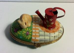 France Limoges Hand Painted Peint Main Bunny Rabbit Red Tin Can Trinket Box