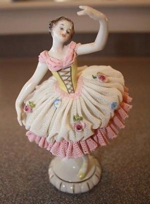 Dresden Style Lace Figurine Victorian Lady-Exquisite