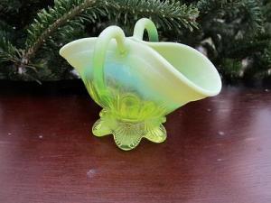 STUNNING! DAVIDSON VASELINE OPALESCENT GLASS PEARLINE BASKET VASE ANTIQUE ART