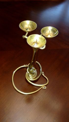 Joe Spoon Metalsmith Vintage Art Nouveau Triple Candlestick Brass Copper