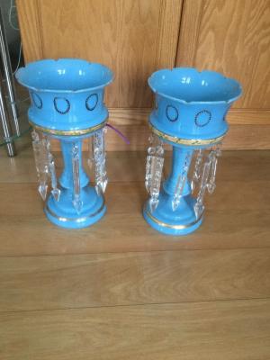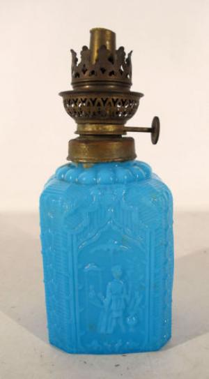 Antique 19th C Russian /Chinese Tea Trade Miniature Blue Milk Glass Oil Lamp yqz
