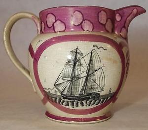 Antique Pink Lustre Jug ~ Sunderland Pottery Pitcher ~ Nautical ~ Ship and Poem