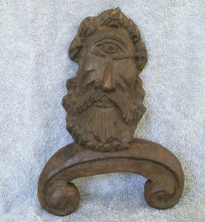 ANTIQUE 1920''s BLACK FOREST CYCLOPS WOOD CARVING WALL PLAQUE SCULPTURE 11"x8" NR