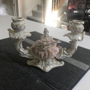 SUPERB RARE MV Muller Volkstedt IRISH DRESDEN LACE SIMONE CANDLESTICK CANDELABRA