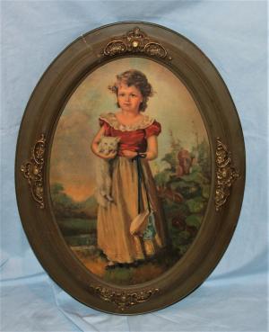 Antique or Vintage Oval Painted Wood w/Gold Picture Art Frame w/Girl Print 24x18
