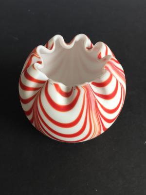 Antique Victorian NAILSEA GLASS White Red Swag Pulled Loop Rose Bowl Pontil