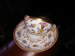Antique DRESDEN FLORAL BASKET TEA CUP & SAUCER SIGNED DRESDEN 255