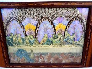 Vintage JESUS LAST SUPPER Brazilian Butterfly Wing Tray Wood Inlay Border